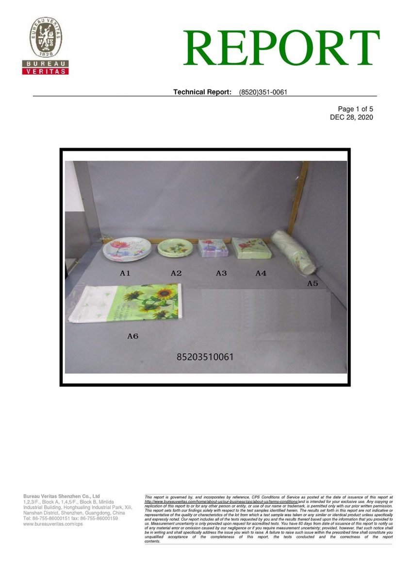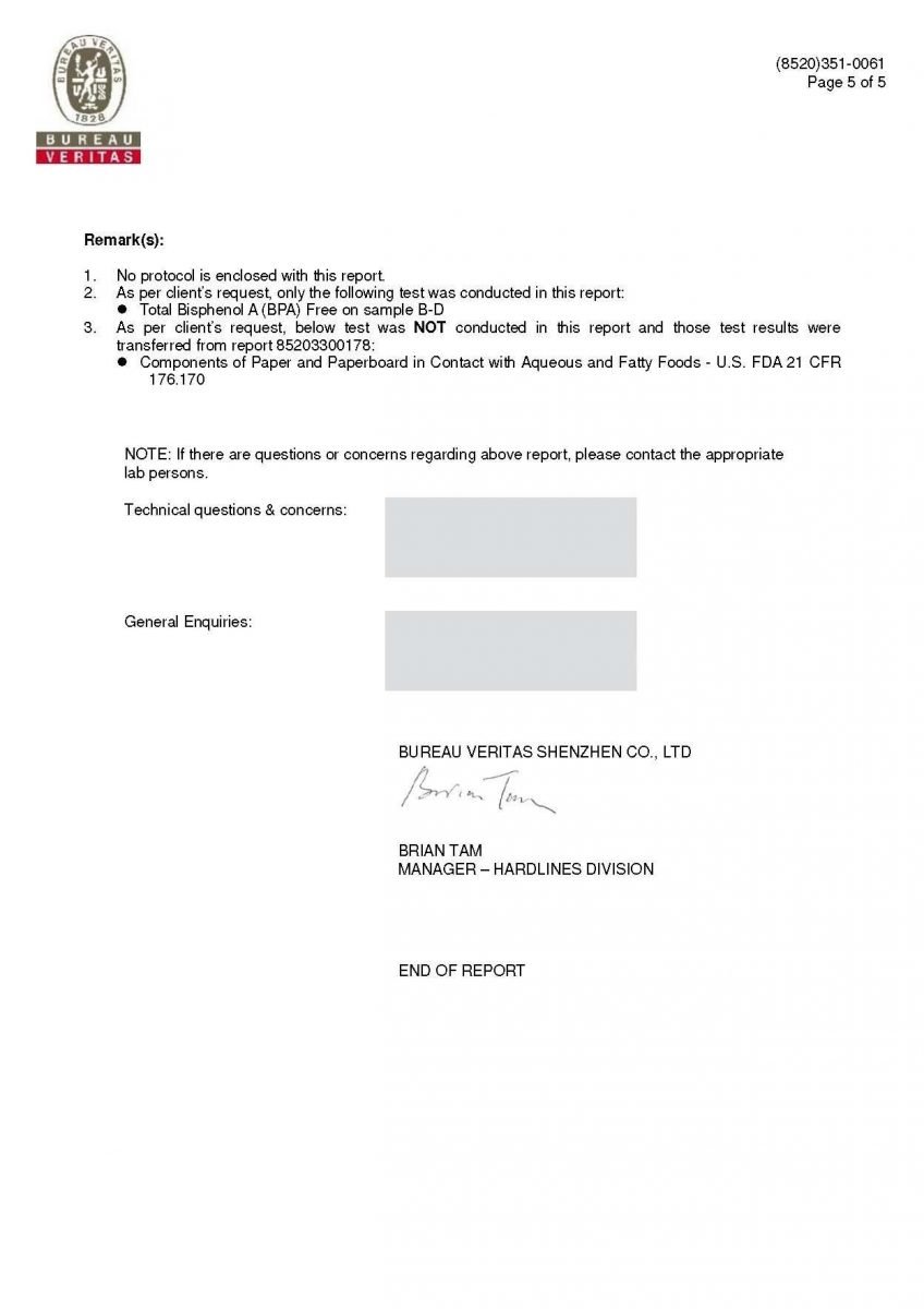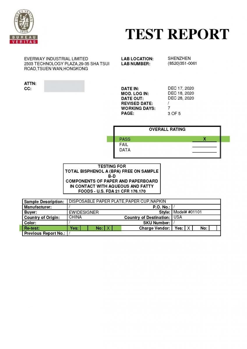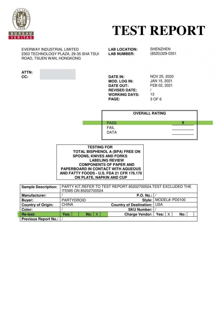 USA FDA Food Safety Test report (US FDA 21CFR 176.170)