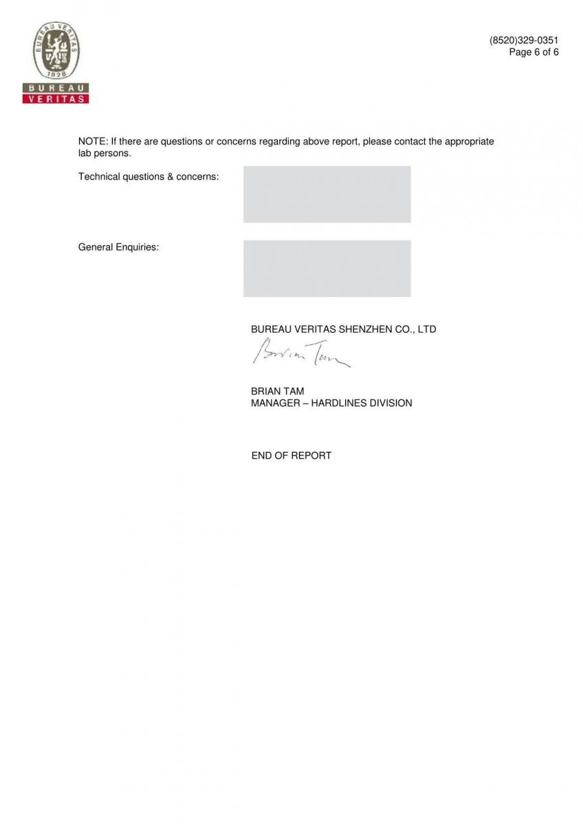China’s National Standards for Food Safety Test Report (QHK20093002)