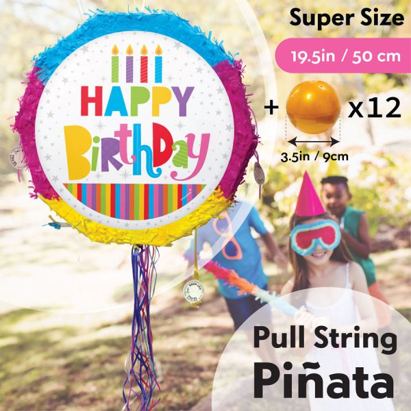 19.5Inch Birthday Pull String Piñata With 12Pcs 3.5Inch Blind Capsules